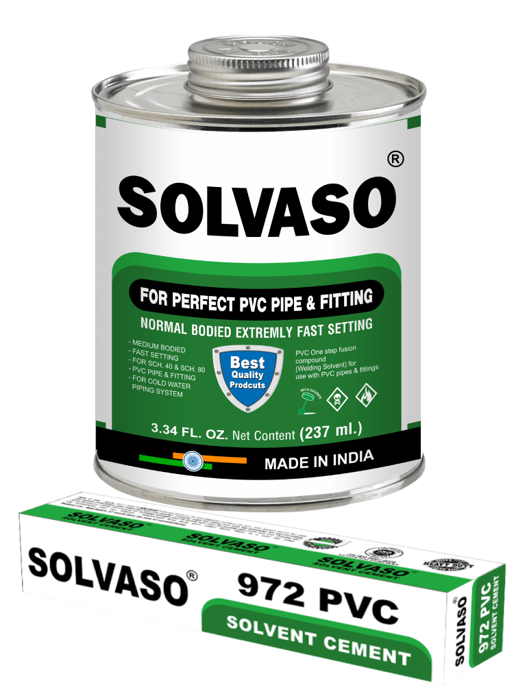 972 PVC Solvent Cement is a high-strength adhesive used to join PVC (Polyvinyl Chloride) pipes and fittings, ensuring leak-proof connections. This solvent cement chemically fuses the surfaces of the PVC, creating a durable bond that withstands pressure, making it ideal for plumbing, irrigation, and industrial applications. It is typically fast-drying and water-resistant, providing a long-lasting solution for both above-ground and underground PVC installations.